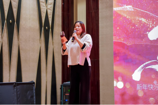 颁奖仪式后,轮值总裁王晓茹发表了热情洋溢的祝酒词。她向全体员工致以诚挚的新年祝福,对大家过去一年的辛勤付出表示衷心感谢。同时展望 2026 年,集团将一方面聚焦美术画材核心业务,持续加大研发投入,推动产品向智能化、个性化升级;另一方面深化国内外市场布局,努力实现更高质量的发展。